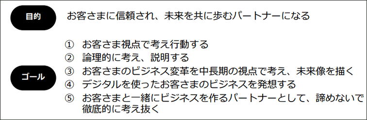 社員一人ひとりの成長により、お客さまと事業の成長を実現することが最終的なゴールです。
