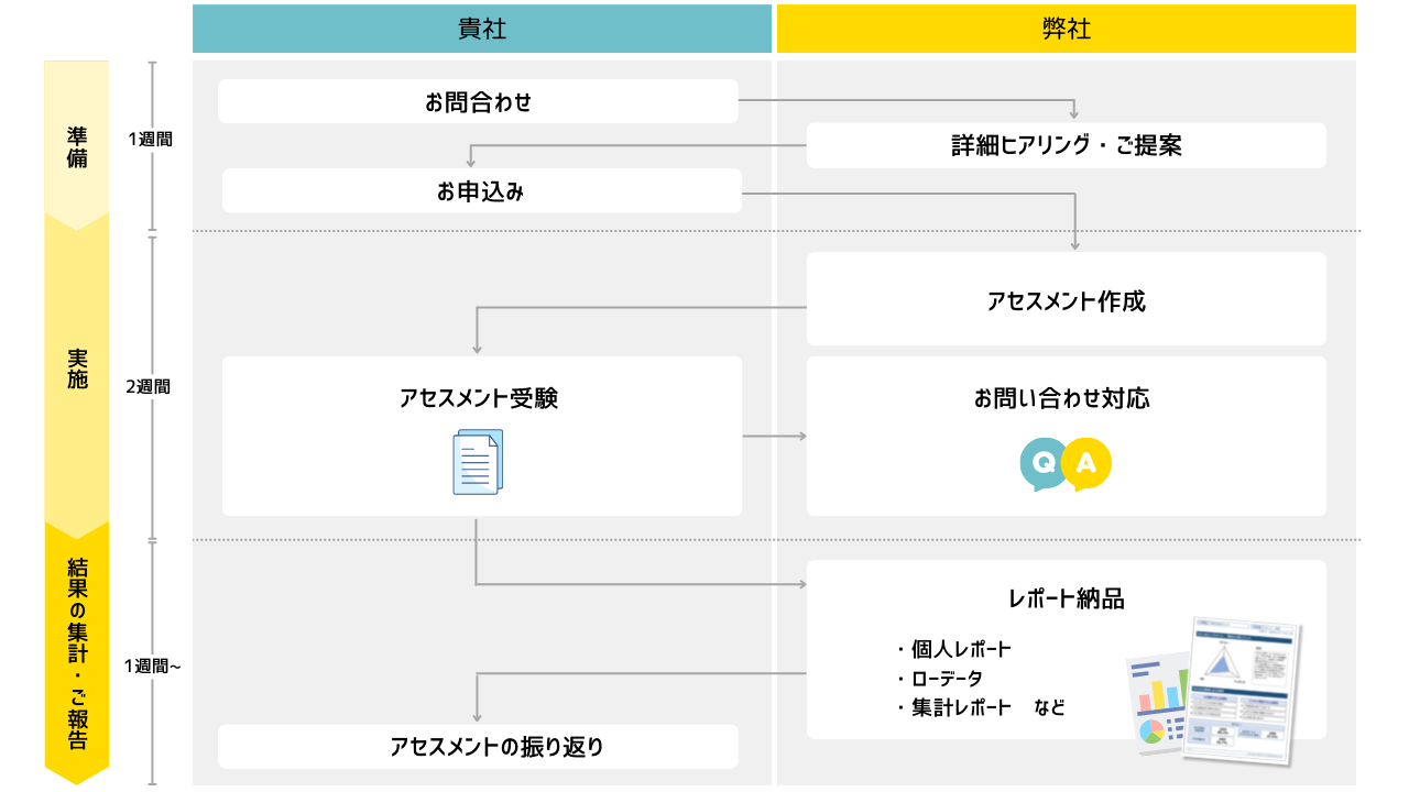 どのコンテンツを受講すればよいかなど、アセスメント受講後の学習まで伴走サポートいたします。