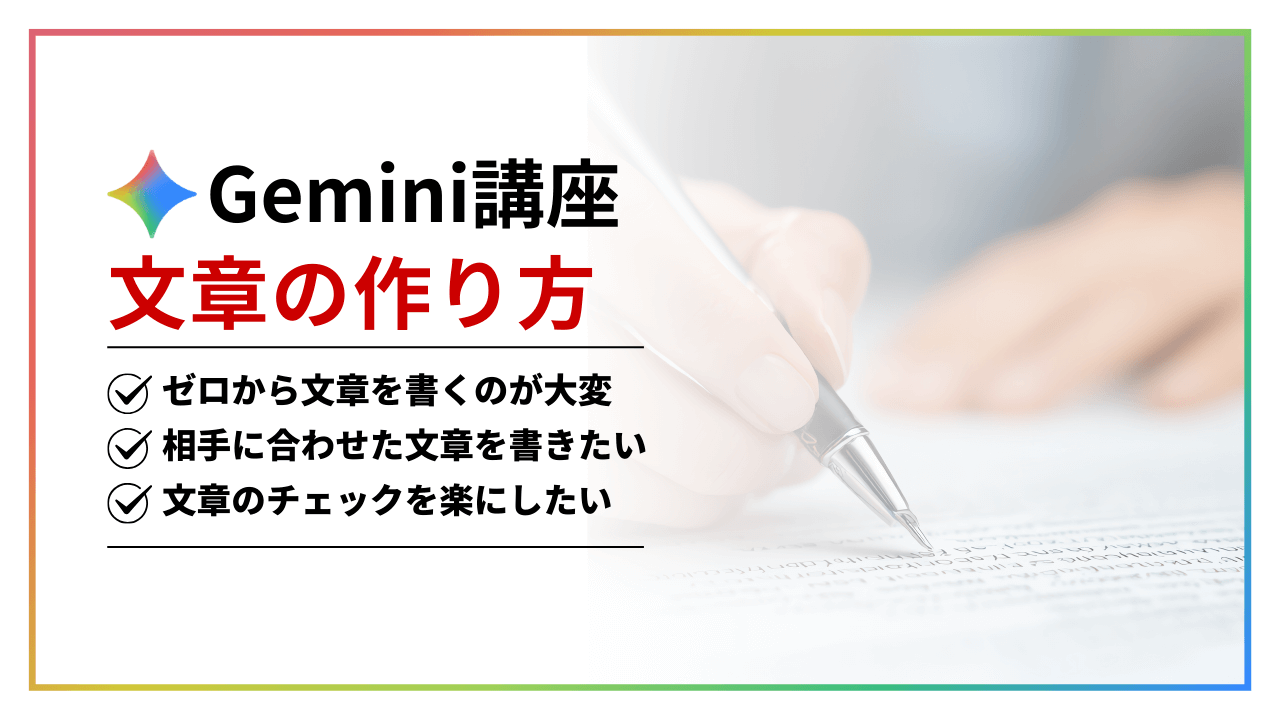 - Geminiの使い方と業務での活用法を理解し、業務シーンに応じた使い方を習得する