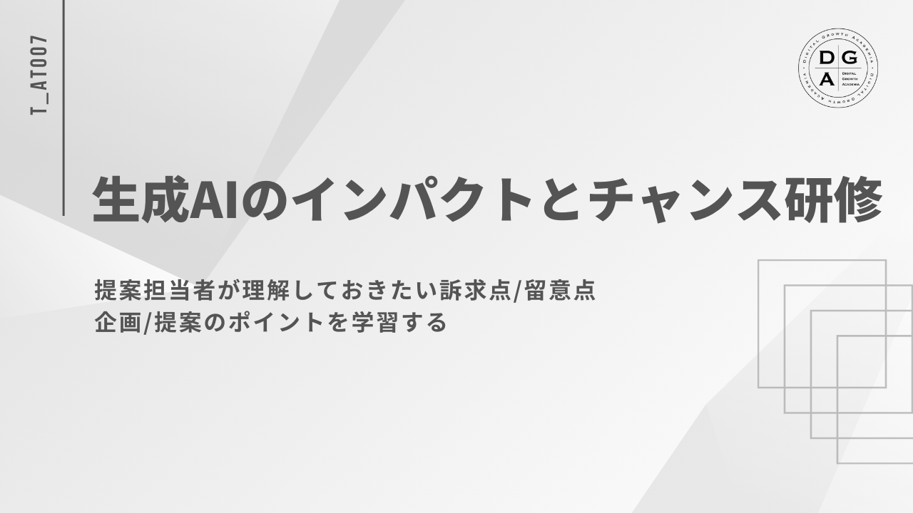 生成AI/ChatGPTを正しく理解し、企画/提案のポイントや提案時の訴求点/留意点について説明します。