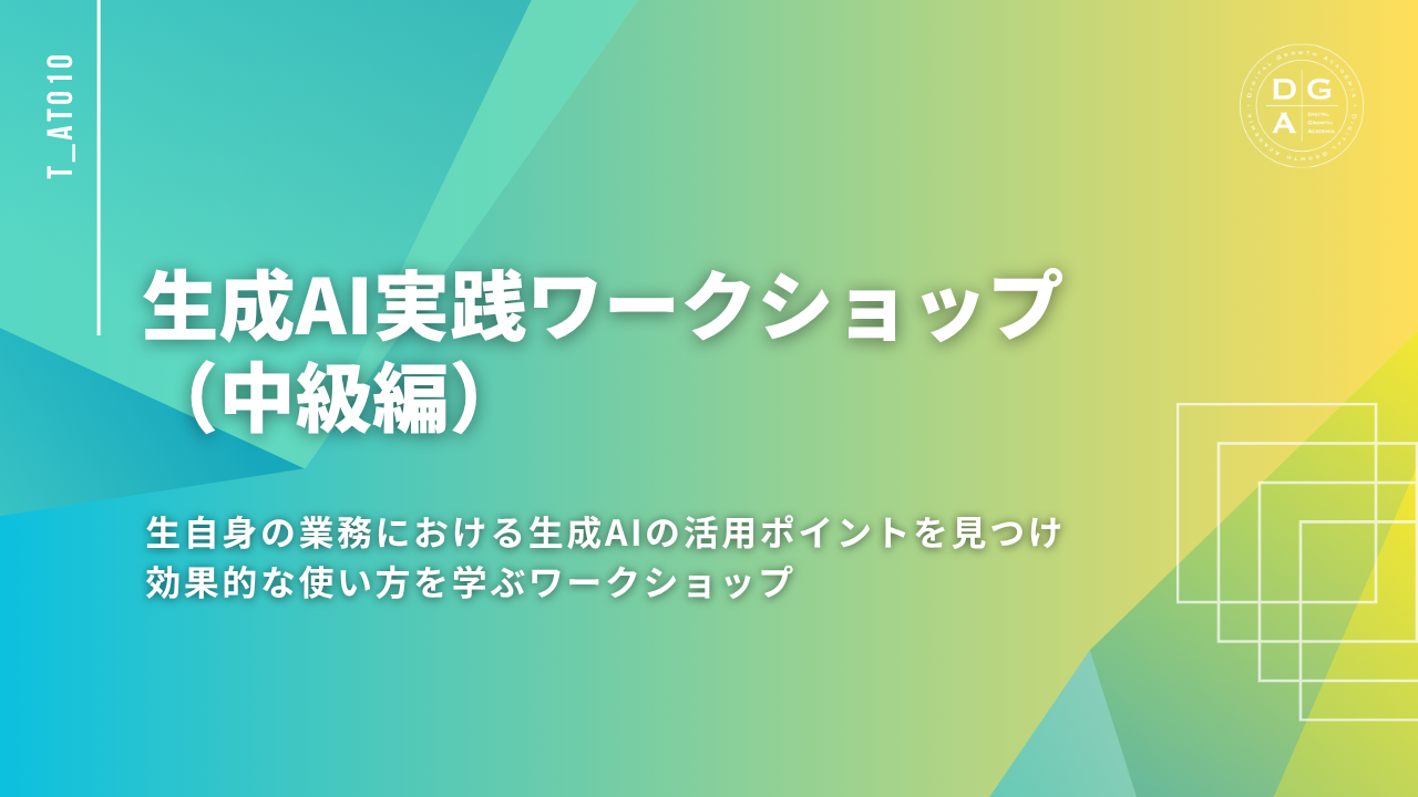 生成AIの基本的な使い方ができる方を対象に、業務で生成AIを効果的に使えるようになるためのコースです。
