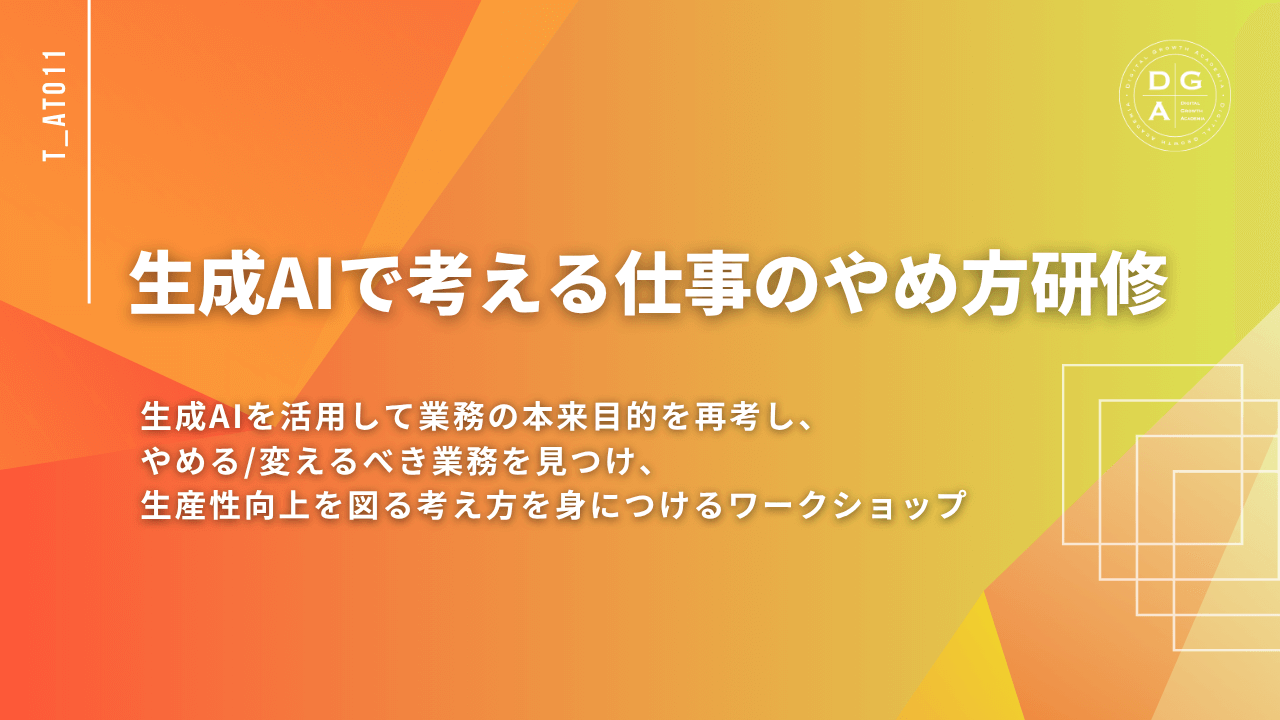 本研修では生成AIとのチャットを活用して業務の本来目的を再考し、やめる/変えるべき業務を見つけ、生産性向上を行うための考え方を習得します。