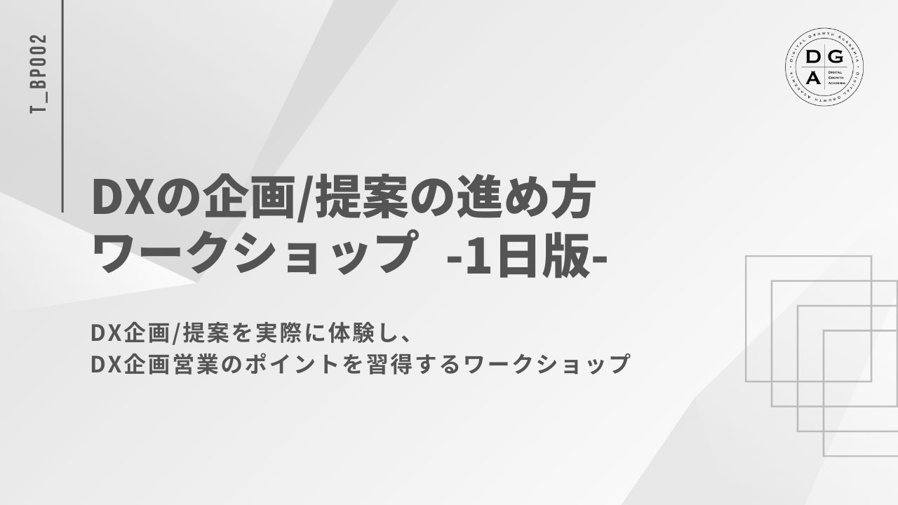 | 受講対象 | DX推進担当 | 受講時間 | 1日 |