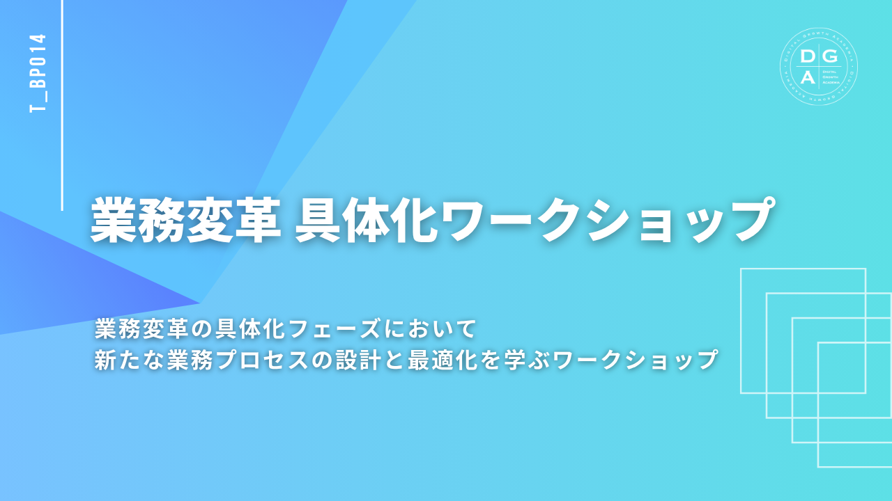 本コースは、業務変革の進め方のうち、具体化フェーズの手法を学習するワークショップです。