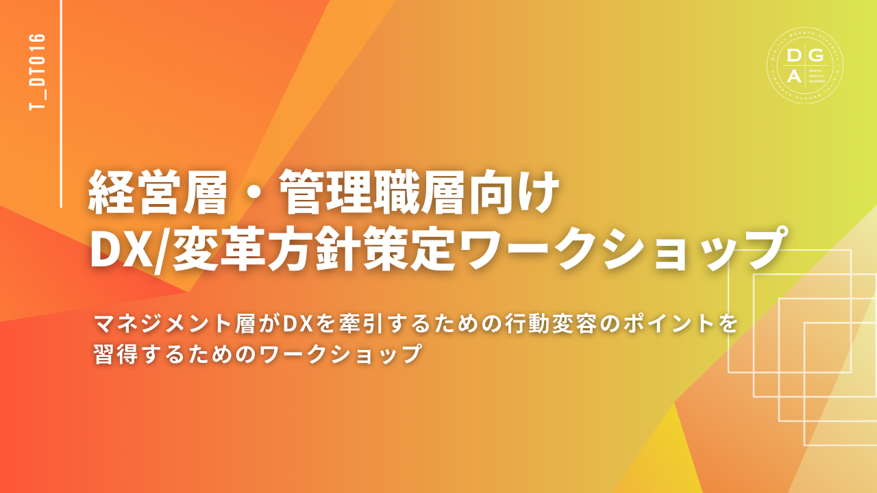 - ワークショップ経営層・管理職層向けDX/変革方針策定ワークショップ