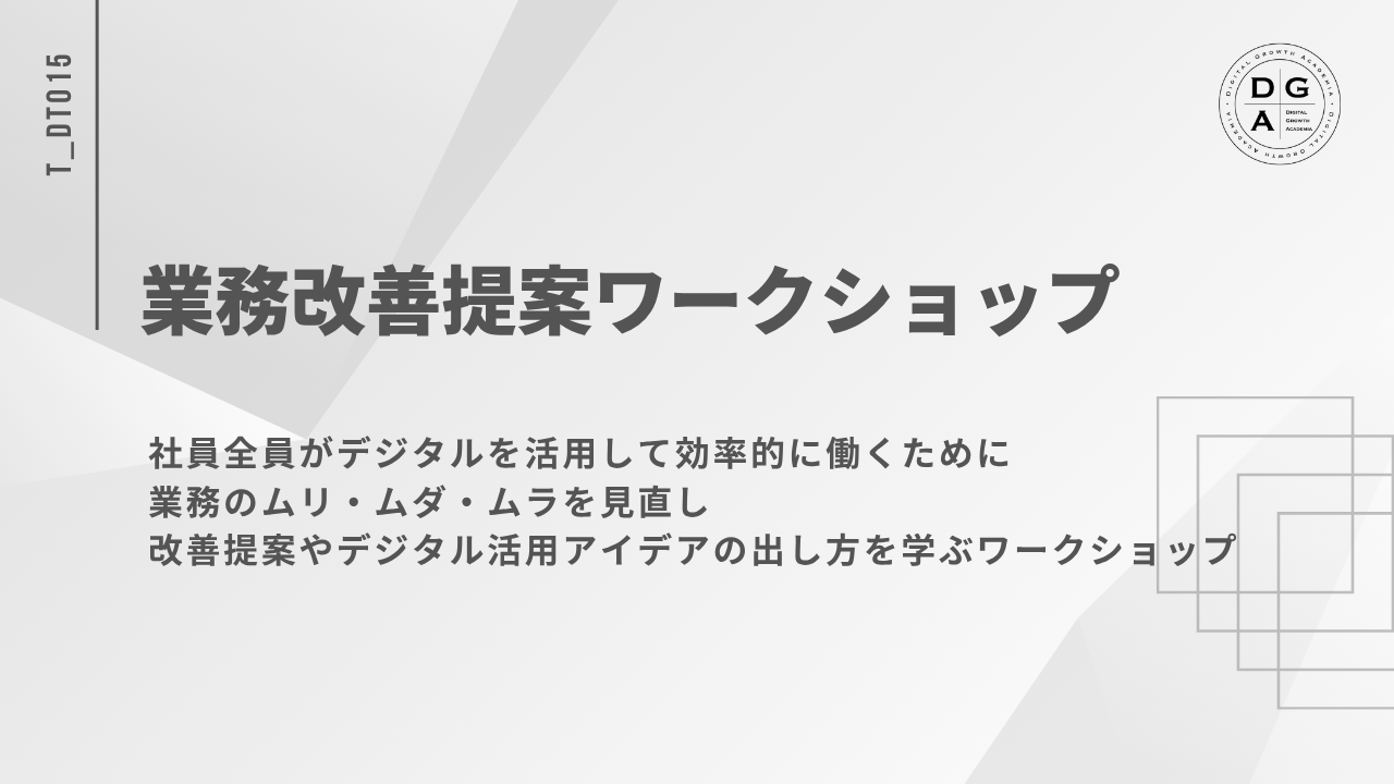 本コースはデジタルツールを活用した業務改善提案を行う方法を学ぶワークショップです。